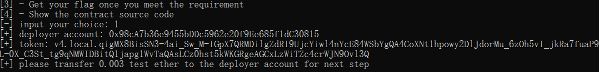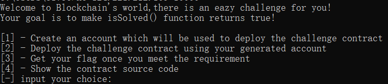有四个选项。首先创建一个账户部署题目合约。