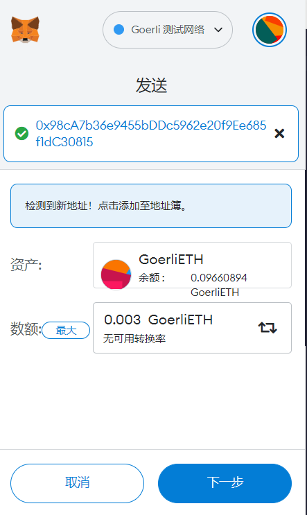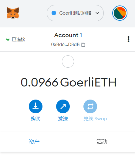 新建的账户是没有eth的(我这里已经领取并用过了)。注意,网络选择Goerli测试网络,然后去题目给出的Goerli水龙头:https://goerlifaucet.com/. 输入你的账户地址即可免费领取0.1个Goerli测试币(每24小时可领一次)。