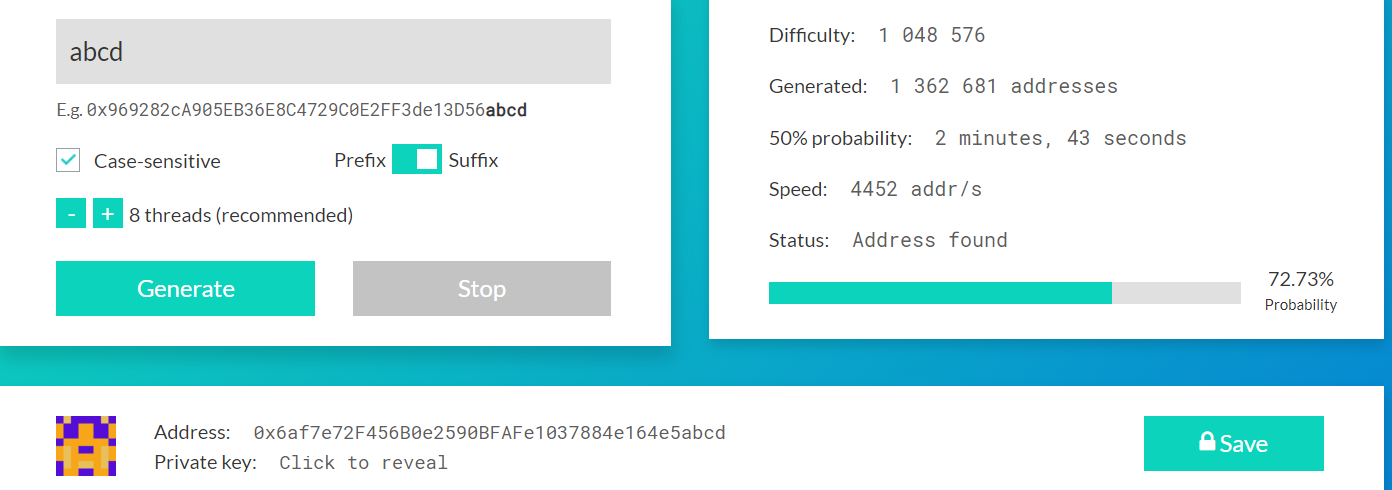 题目要求调用者地址的末位为0xabcd。我们用题目提示中给出的vanity-eth工具。