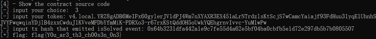 最后先调用chooseone,再调用getflag,提交getflag的交易hash即可。